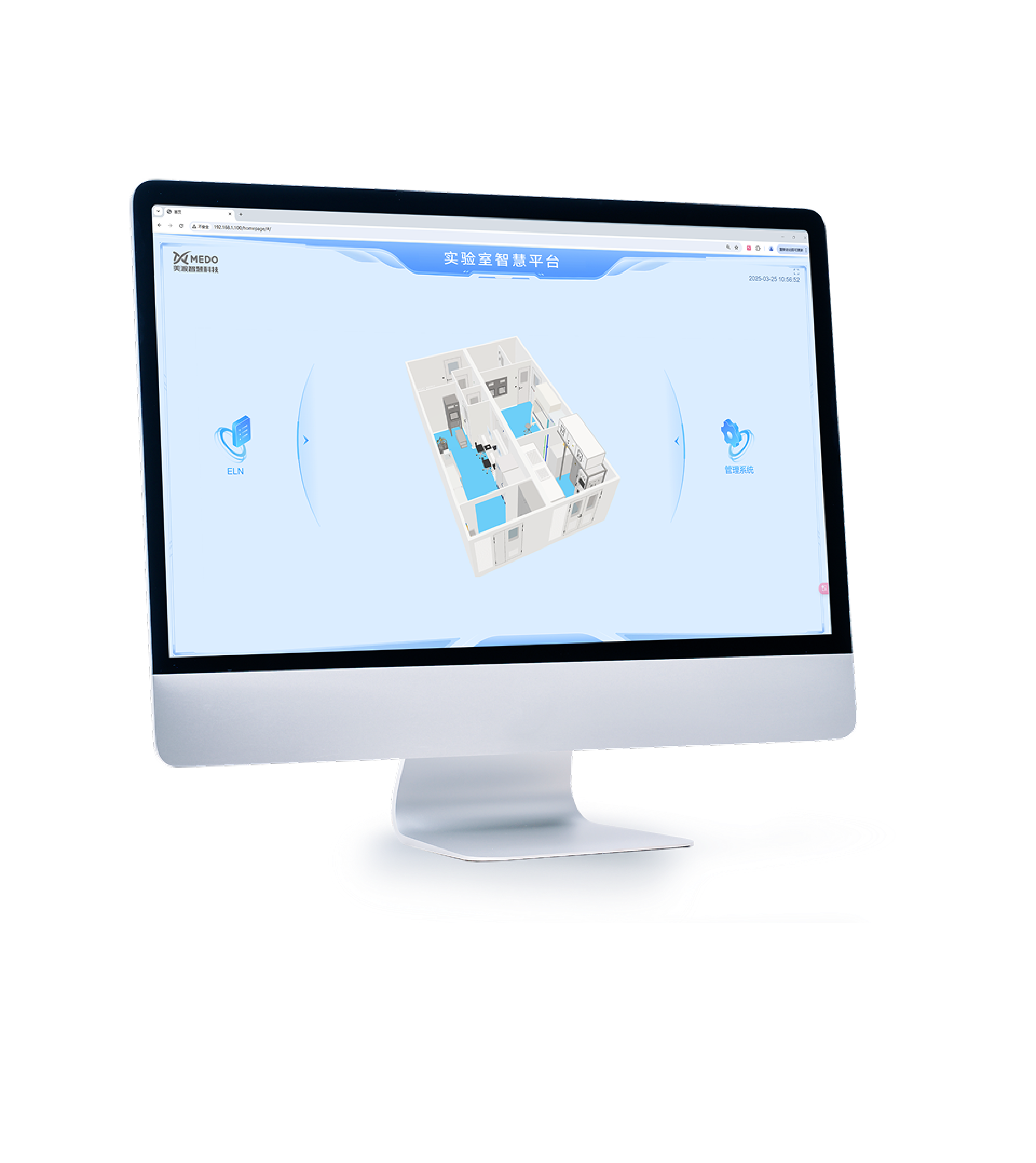 以 3D 可视化形式展示实验室建筑/设备布局及运行状态,支持多角度缩放与细节查看,提升管理直观性。